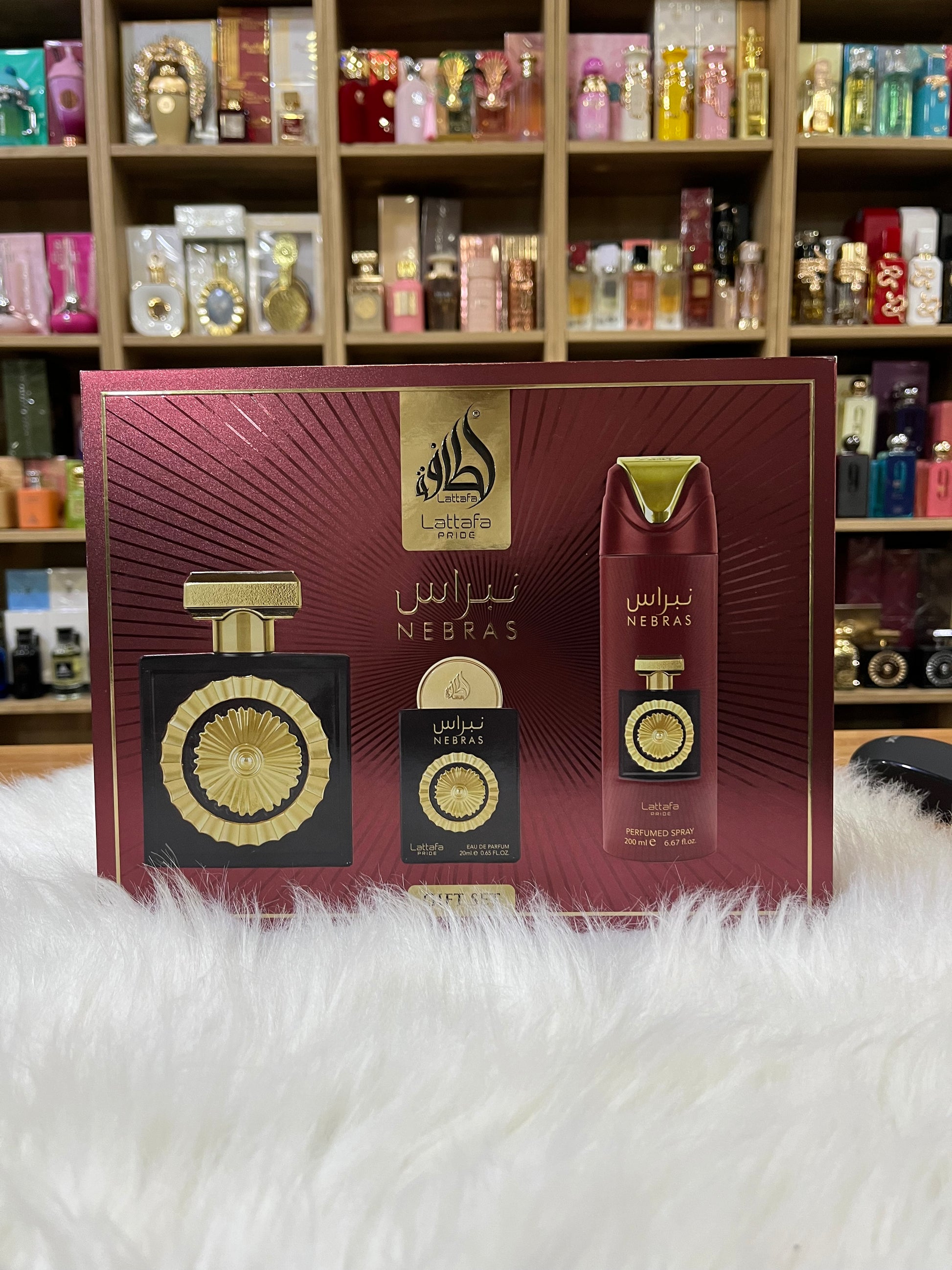 Nebras de Lattafa Perfumes es una fragancia de la familia olfativa Oriental Vainilla para Hombres y Mujeres. Esta fragrancia es nueva. Nebras se lanzó en 2022. Las Notas de Salida son bayas rojas y mandarina; las Notas de Corazón son vainilla, cacao y rosa; las Notas de Fondo son azúcar, haba tonka, ámbar y almizcle.